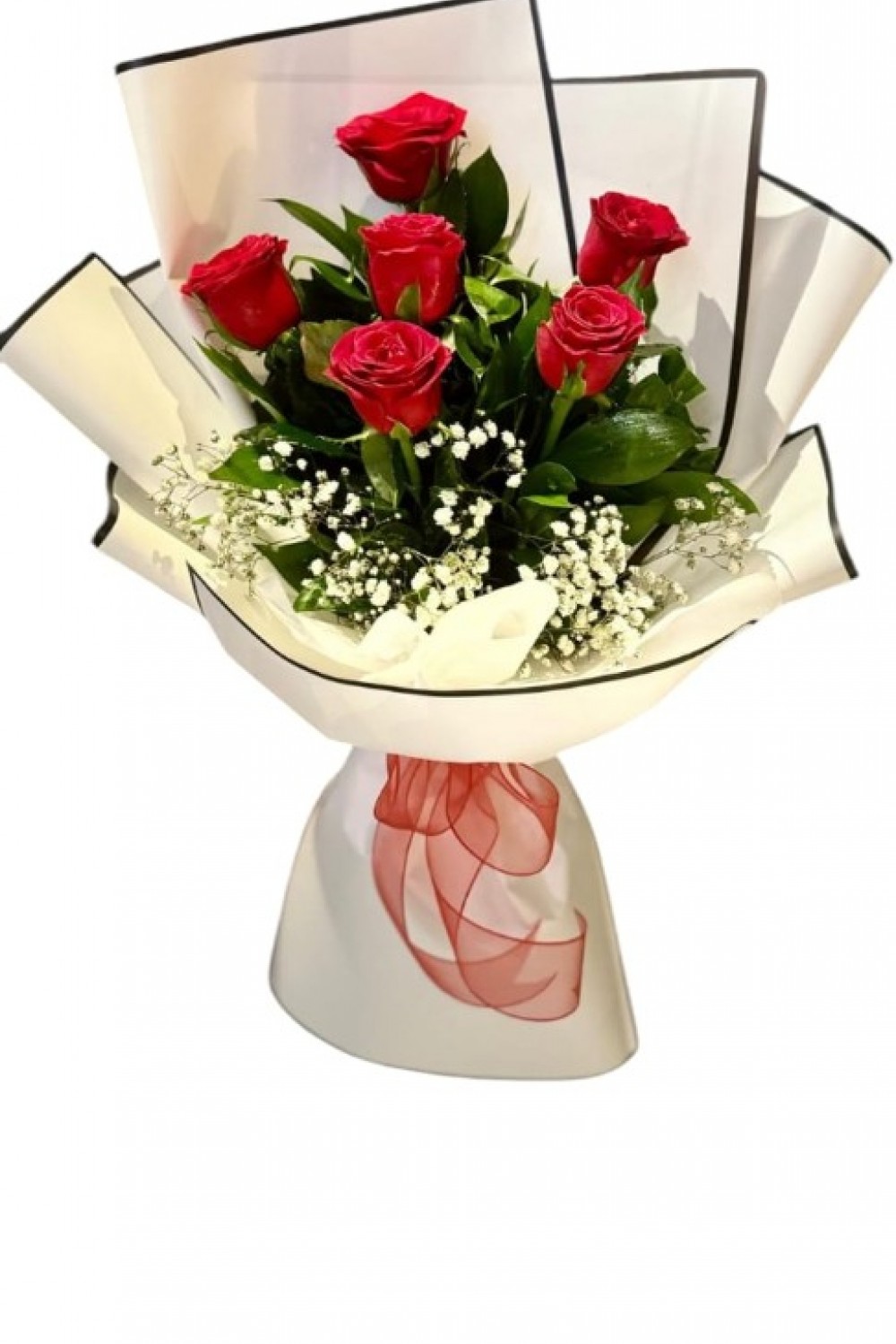 6’lı Kırmızı Gül Buketi (Beyaz Ambalajlı) – Sadelikte Zarafet, Her Dem Aşk
