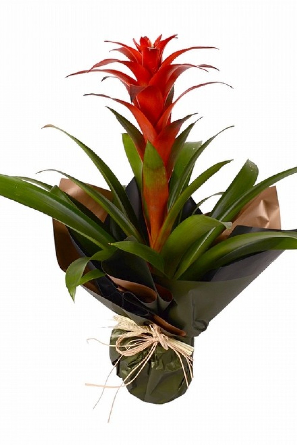 Bu çiçek aranjmanında taze ve kaliteli guzmanya bitkisi kullanılmıştır. Kırmızının en güzel tonuna sahip olan bu bitki şık bir paketleme ile benzersiz bir aranjman oluşturur. Bu çiçeğin yaklaşık yüksekliği 35- 45 cm boyutlarındadır.