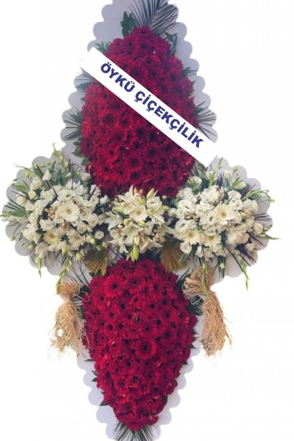 Öykü Çiçek Evi’nin özel tasarımı bu gösterişli çelenk, açılışlar, düğünler, nişanlar ve özel kutlamalar için ideal bir seçimdir. Canlı kırmızı gerberalar tutkunun ve enerjinin simgesiyken, zarif beyaz lilyumlar ve karanfiller tasarıma sofistike bir denge katar.